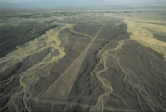 Dans la vallée d’Ica, près d’Ocucaje, à 400 km. au sud-est de Lima, au Pérou, les Indiens de la civilisation Paracas dessinent sur le flanc d’une colline un condor de 137 m. de long et 87 m. de large. C’est Eduardo Herran qui l’a redécouvert en 2008. Le condor est alors une divinité que les Incas remplaceront par le soleil. Cette civilisation pratiquait une déformation crânienne dans un but esthétique, ainsi que la trépanation rituelle, parfois répétée. Après l’an 200, la civilisation de Paracas se fondra dans celle de Nazca (~ 200 à 800 ap. J.C.). Elle est une des plus importantes cultures pré-incas du Pérou qui émergea après la disparition de la domination Chavin pendant la période de l’Horizon Ancien dans la région de Ica-Nazca.