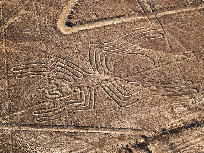 Les géoglyphes, ces immenses marquages au sol de traits souvent géométriques – on en compte plus de 10 000 sur 500 km² – étaient effectués par enlèvement de la couche superficielle du sol, colorée par un oxyde de fer pour atteindre le gypse dont est constitué le sol de cette région. On n’a pas encore déterminé leur signification : calendrier astronomique ? signalétique pour les ojas, ces puits – on en compte une quarantaine – qui donnaient accès aux nappes phréatiques via les puquios, un réseau d’aqueducs souterrains ? Ces latitudes connaissaient la fin d’une période relativement humide pour faire place à une période de sécheresse. Cette civilisation pratiquait encore une déformation crânienne par un serre-tête de cuir qui enserrait la tête du bébé pendant un an, contraignant le crâne à se développer vers le haut dans un but esthétique ; ils pratiquaient encore la trépanation rituelle, parfois répétée.